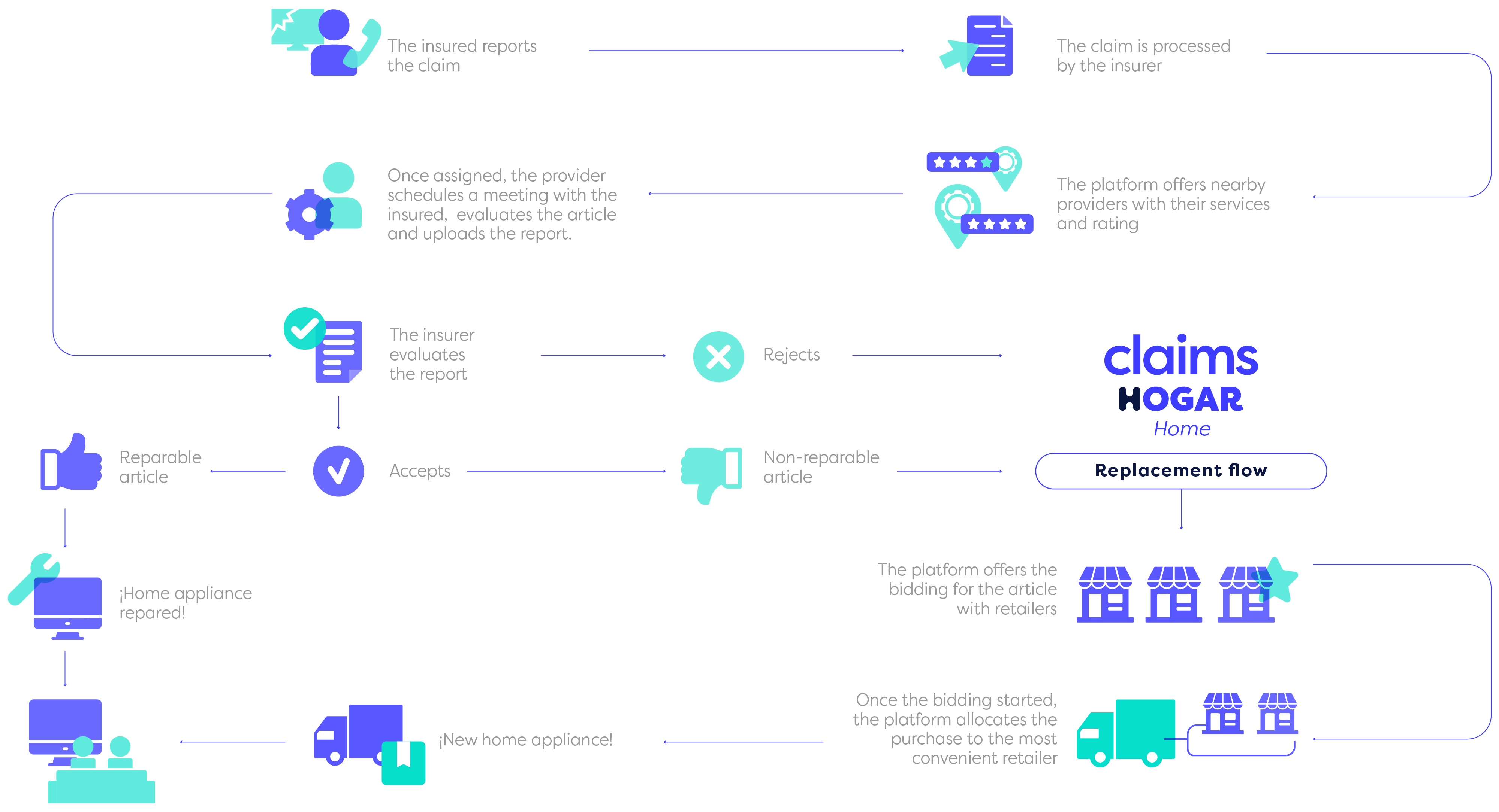 Our platform improves the service quality for the policyholder, by replacing or repairing their item in record time and keeping them informed in every instance of the claim cycle.