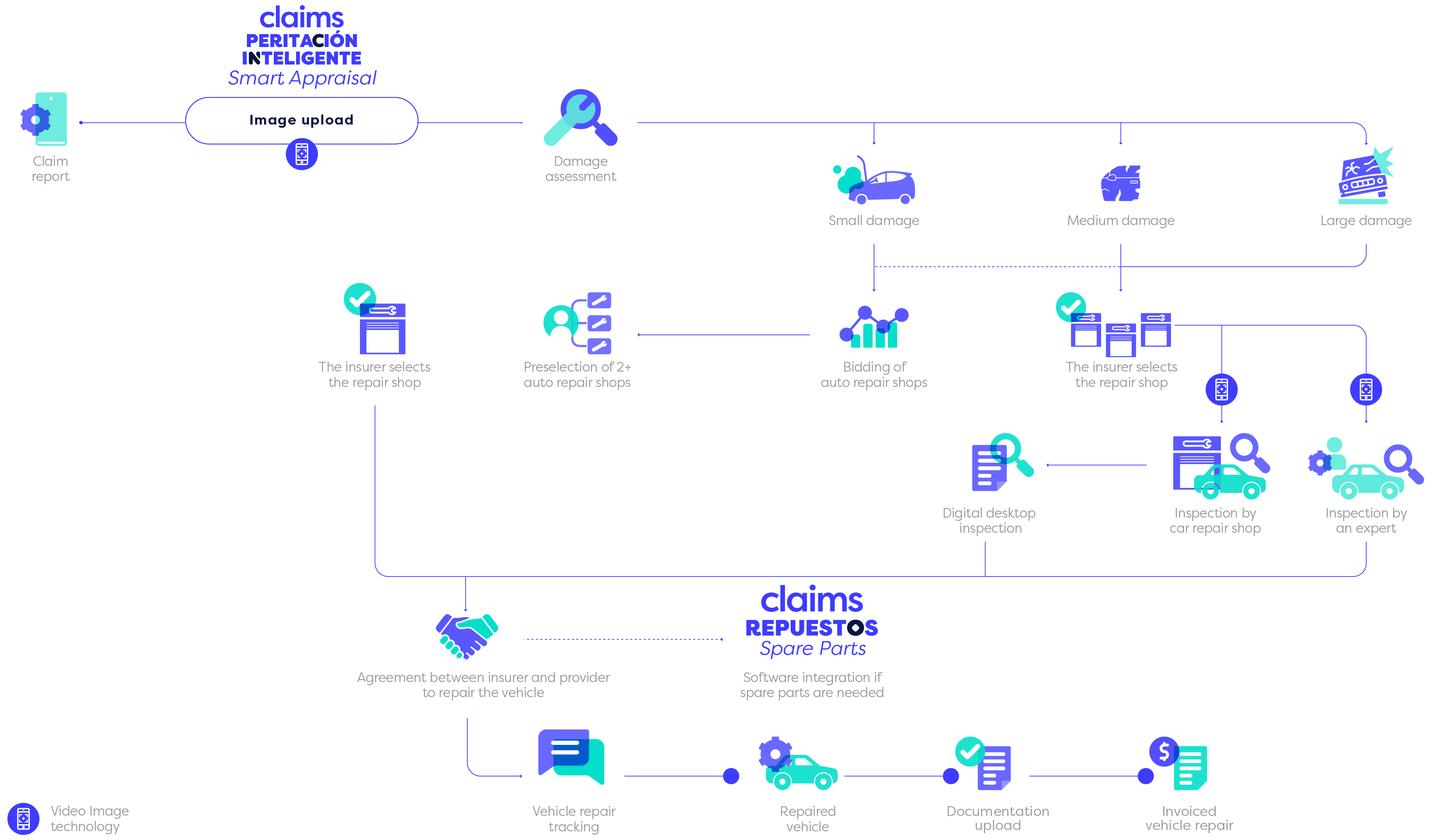 Claims Services Smart Appraisal is a platform that allows the inspection of a damaged vehicle with artificial intelligence and the assessment of the damage. It also allows to coordinate the repair.